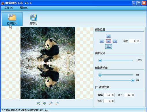 倒影制作工具:用戶設(shè)定好圖像與倒影的間距,倒影鏡像百分比,倒影透明度后該軟件即可自動(dòng)生成圖像倒影,還可設(shè)置倒影波浪特效。只需簡(jiǎn)單幾步操作就可以為自己的圖片添加倒影效果,完全傻瓜式操作。支持各種常用圖片格式。只需簡(jiǎn)單幾步操作就可以為自己的圖片添加倒影效果,完全傻瓜式操作。