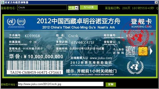 2012世界末日諾亞方舟船票領(lǐng)取