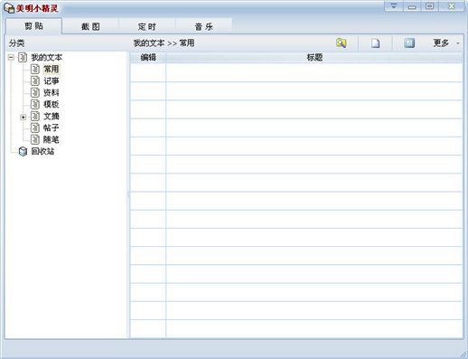 美明小精靈是一款功能強大、簡便易用的增強型桌面軟件,支持包括文本管理、剪貼板、屏幕截圖、定時提醒、音樂播放在內(nèi)的多種實用和常用功能,軟件界面簡潔大方,操作方便簡單,是您日常工作和主流學(xué)習(xí)的好搭檔、好助手。