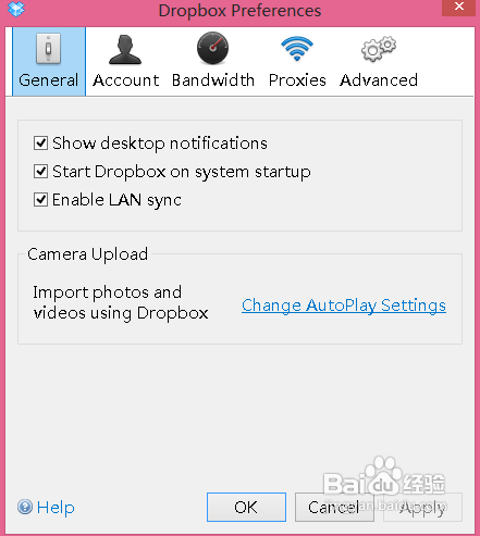 接下來,就會(huì)看到軟件彈出一個(gè)設(shè)置窗口。分別為General(常規(guī)設(shè)置),Account(帳戶設(shè)置),Bandwidth(帶寬設(shè)置),Proxies(代理設(shè)置),Advanced(高級(jí)設(shè)置)。如下圖所示