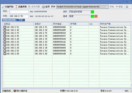 點(diǎn)擊“掃描網(wǎng)絡(luò)”或者“流量探測(cè)”來實(shí)現(xiàn)檢測(cè)局域網(wǎng)中的電腦。為了保密起見,建議選擇“流量探測(cè)”。如果“流量探測(cè)”找不到要控制的電腦,在檢查網(wǎng)關(guān)的IP地址沒有錯(cuò)誤之后,才使用“掃描網(wǎng)絡(luò)”功能。也可以在主機(jī)列表上點(diǎn)擊右鍵選擇“添加主機(jī)”手動(dòng)添加要控制的電腦。