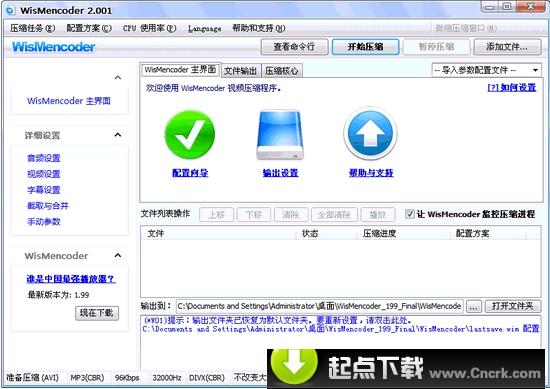 按照您計算機的CPU選擇一個文件,將mencoderXX改名為mencoder之后就可以點WisMencoder.exe運行WisMencoder了。本壓縮包內(nèi)默認適合于奔騰四、迅馳以及之后出的CPU。