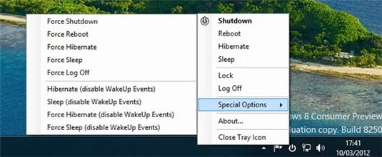 win8最快關(guān)機方法 通過安裝NPowerTray,可以在右下角的托盤處給你添加電源管理選項,然后就可以直接選擇關(guān)機、重啟還是待機等等了。