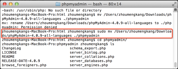 sudo mv /Users/zhoumengkang/Downloads/phpMyAdmin-4.0.9-all-languages ./phpmyadmin