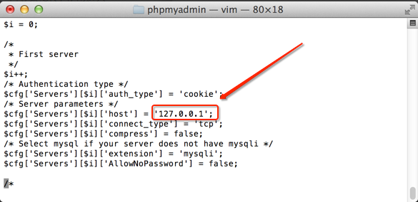 $cfg['Servers'][$i]['host'] = 'localhost'; // MySQL hostname or IP address