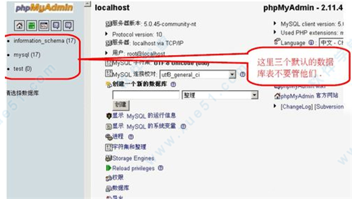 2、進入的首頁可以看到有三個原有數(shù)據(jù)庫