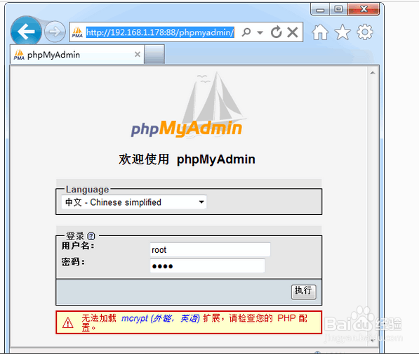 1、首先登錄進去,輸入剛剛配置的mysql賬號密碼