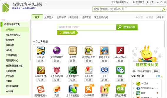 搜索安裝應(yīng)用使用豌豆莢內(nèi)置的應(yīng)用搜索,搜索得到的結(jié)果立即發(fā)送到手機(jī),不必支出額外費(fèi)用,隨時(shí)方便安裝。