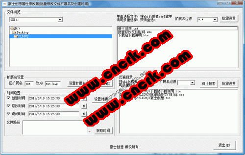 豪士創(chuàng)想屬性修改器修改文件的創(chuàng)建時間 不但可以批量修改文件的創(chuàng)建時間、修改時間以及訪問時間外 還可以批量修改文件擴展名。
