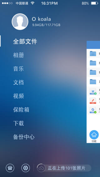 360云盤iphone版應(yīng)用程序能讓您方便的在iphone手機端查看與管理360云盤內(nèi)的文件內(nèi)容。360云盤iPhone版無需U盤,360云盤可以讓您的照片,文檔、音樂、視頻、軟件、應(yīng)用等各種內(nèi)容,隨時隨地觸手可及,永不丟失。