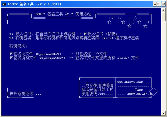 dospy 簽名工具是一個有了證書以后執(zhí)行簽名的工具!操作最簡單的簽名工具:只須在 sis(x) 程序上點鼠標右鍵即可!(幾乎不用看說明)