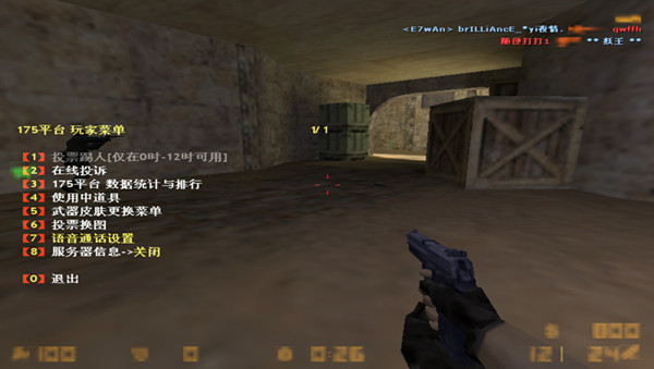 1、您是一位新手玩家:推薦進(jìn)入死亡區(qū),死亡服務(wù)器是讓您的反應(yīng)速度以及槍法大大提高的地方。在您死后,可以馬上復(fù)活。讓您在重新投入“戰(zhàn)斗”中, 久而久之你的槍法會慢慢提高。而您的反應(yīng)也會在死亡服務(wù)器里得到極大的幫助,并且一步一步的指導(dǎo)您掌握CS的操作技巧和175pt的特色服務(wù)。