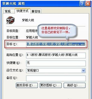 4、你會(huì)看見(jiàn)穿越火線的客戶端啟動(dòng)文件到底在我的電腦中哪個(gè)盤,例如我的電腦就是在E盤,E:游戲騰訊游戲穿越火線穿越火線QQLogin.exe 你的也許在C盤,你參考上圖中的目標(biāo)。此時(shí)我們選擇火線魔盒路徑設(shè)置界面