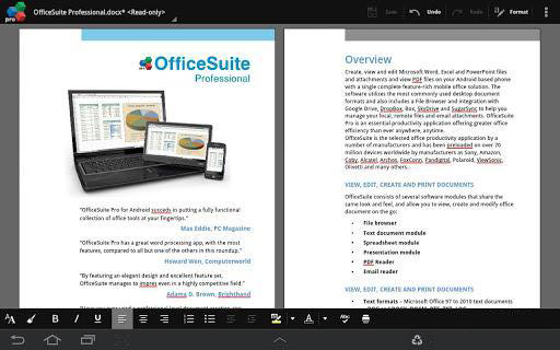 此外,通過OfficeSuite在手機(jī)上創(chuàng)建動(dòng)態(tài)文本,計(jì)算分析數(shù)據(jù)將會(huì)異常簡單。 需要隨身修改文檔? 不必?fù)?dān)心,OfficeSuite可以保持原始文檔的格式,并讓你修改成滿意的結(jié)果用手機(jī)收取的電子郵件附件,包含Office文檔的,您也可以方便的用手機(jī)來查閱、編輯啦!OfficeSuite用獨(dú)特算法處理Office文檔。處理微軟格式比其他任何程序都更快更精確。只有用OfficeSuite才能在手機(jī)上打開和修改RTF文件。【主要功能】