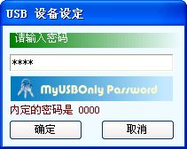 在系統(tǒng)托盤中MyUSBOnly圖標(biāo)的右鍵菜單中點(diǎn)擊“設(shè)定”項(xiàng),在彈出的MyUSBOnly登錄窗口中輸入密碼(默認(rèn)為“0000”),確定后即可打開MyUSBOnly管理窗口。