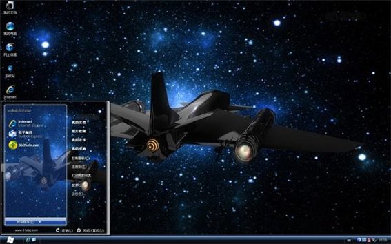 特別傾情打造的,一架純黑色的戰(zhàn)機(jī)翱翔在藍(lán)色星空中,充滿著神秘和能量,如果您的系統(tǒng)是win7的,也不用遺憾