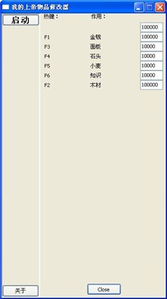 all my god 功能: 修改金錢,面板,石頭,小麥,知識,木材等