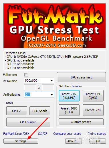 2、FurMark是一個(gè)烤機(jī)軟件,主要是使得顯卡滿載,看溫度能去到多高(越低越好)。