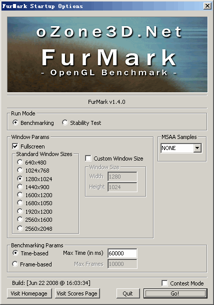 因此,顯卡要求NVIDIA GeForce 5以上和AMD/ATI Radeon 9600或S3 Graphics Chrome 400 series以上.這個(gè)測(cè)試提供很多選項(xiàng)設(shè)置,包括全屏/窗口設(shè)置、MSAA選項(xiàng)、窗口大小、測(cè)試時(shí)間、當(dāng)然還有GPU穩(wěn)定性測(cè)試(烤機(jī)).