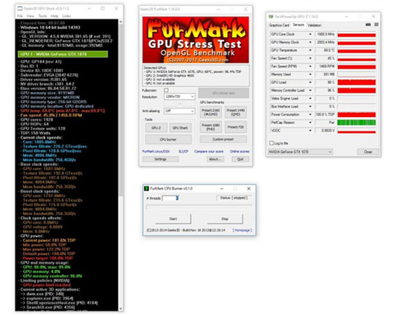 Furmark是著名的OpenGL顯卡性能/穩(wěn)定性測(cè)試工具。Furmark中文版最近推出了最新版1.7.0版本,新版本最大的變化就是可以與另一款知名軟件GPU-Z協(xié)同工作,更加精確全面地顯示測(cè)試時(shí)顯卡的各項(xiàng)參數(shù)。本站提供Furmark中文版下載。測(cè)試提供很多選項(xiàng)設(shè)置,包括全屏/窗口設(shè)置、MSAA選項(xiàng)、窗口大小、測(cè)試時(shí)間、當(dāng)然還有GPU穩(wěn)定性測(cè)試(烤機(jī))。