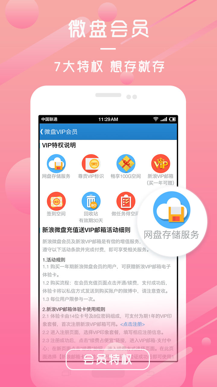 免費(fèi)空間:默認(rèn)2G,邀請好友最高可達(dá)10G。同步功能:只需將文件拖拽到'我的微盤'同步目錄,即可上傳并同步到任一終端。