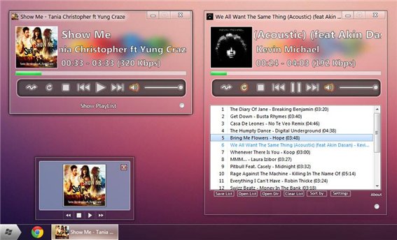 Aero Glass Mp3 Player是一個(gè)免費(fèi)的音樂(lè)播放器,界面完全支持aero透明玻璃特效,界面中大部分地方都是晶瑩剔透的。不過(guò)它只能夠運(yùn)行在windows 7及更高版本的操作系統(tǒng)上。