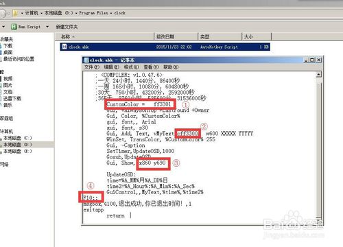 5.刪除 clock.ahk 中的代碼,復(fù)制下面的這段代碼,粘貼到 clock.ahk中: