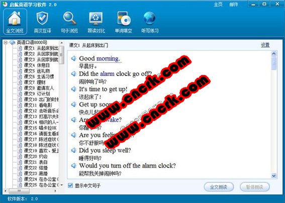 啟航英語學習軟件是一款完全免費的英語學習軟件,它精選了當前最為常用的英語口語和聽力教材,全部采用真人語音朗讀,并配以中文譯文,綜合多種高效實用的學習方式,幫助您迅速提高英語口語和聽力水平。