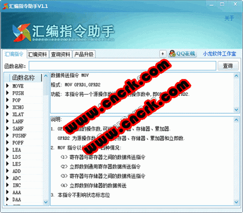 1、匯編指令查詢功能,非常全面的匯編指令以及說明介紹。
