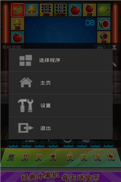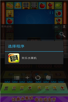 打開游戲歡樂水果機(jī),然后點(diǎn)擊八門懸浮圖標(biāo),點(diǎn)擊修改頁(yè)面的菜單鍵,或者點(diǎn)擊左上角的系統(tǒng)程序幾個(gè)字,進(jìn)行選擇程序,我們這里當(dāng)然是選擇歡樂水果機(jī)咯!