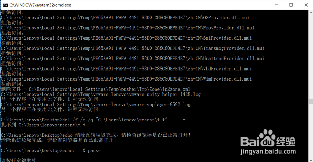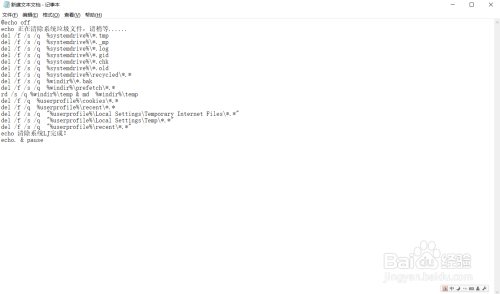 4、雙擊保存的“系統(tǒng)清理.bat”文件即可運(yùn)行,清理結(jié)束后按任意鍵。