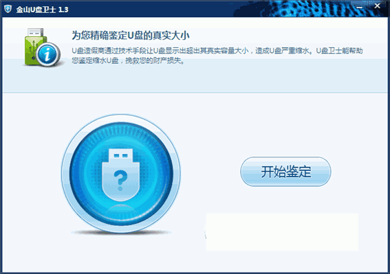 金山U盤衛(wèi)士是一款功能非常強(qiáng)大的u盤檢測(cè)修復(fù)金山軟件,這款u盤衛(wèi)士可以快速檢測(cè)你的移動(dòng)設(shè)備的真實(shí)大小,你只要把U盤對(duì)準(zhǔn)USB接口,輕輕的插進(jìn)去后,打開U盤衛(wèi)士,就可快速檢測(cè)你的移動(dòng)設(shè)備是不是傳說中的坑爹U盤,避免黑心商人帶給你的各種不便。