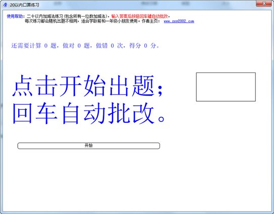 二十以內(nèi)加減法練習(自動出題系統(tǒng)) 二十以內(nèi)加減法練習自動出題自動批改,有效地提高學生的20以內(nèi)加減法口算能力 由一線教師開發(fā)建議使用。