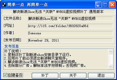 1.拷貝該補(bǔ)丁到新浪show安裝目錄下運(yùn)行。