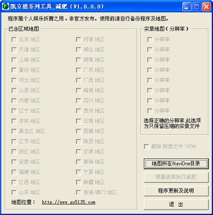 凱立德GPS導航地圖減肥工具軟件,由于導航地圖容量越來越大,多余省份的地圖數(shù)據(jù)可有效清除,減少容量占用,地圖照樣正常使用。