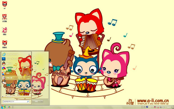 這款主題的桌面背景是阿貍和朋友們一起舉行音樂會(huì)的場景,只見阿貍認(rèn)真的彈奏著手風(fēng)琴,阿貍它們的周圍飄蕩著五顏六色的音符,看來阿貍它們已經(jīng)沉醉在美妙的音樂中了吧!