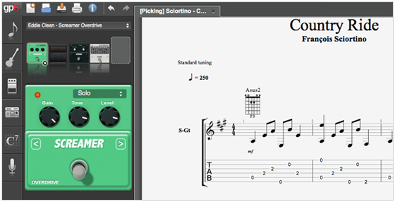 可以使用一系列的工具來提高你的技術(shù):節(jié)奏、打環(huán)裝置、節(jié)拍器、和弦和音庫(kù)規(guī)模、吉他還有鋼琴指板。你可以編輯或者購(gòu)買完整的樂譜文件,然后你可以單獨(dú)演奏或者模仿原聲演奏(伴奏)。