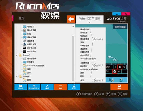 新增:創(chuàng)建關(guān)機(jī)組(關(guān)機(jī)、重啟、注銷、睡眠、休眠、切換用戶、高級重啟選項(xiàng)-此項(xiàng)重啟后可進(jìn)入疑難解答等界面) 修正:部分用戶無法恢復(fù)默認(rèn)Winx菜單的問題