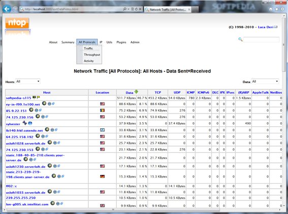 NTOP是一個(gè)功能強(qiáng)大的應(yīng)用程序,允許您監(jiān)視網(wǎng)絡(luò)連接,并提供了重要的交通統(tǒng)計(jì)。該計(jì)劃設(shè)有一個(gè)網(wǎng)絡(luò)接口,可與任何互聯(lián)網(wǎng)瀏覽器訪問。使用該應(yīng)用程序之前,你需要選擇你要監(jiān)視的網(wǎng)絡(luò)接口。服務(wù)已經(jīng)啟動(dòng)后,您可以瀏覽的網(wǎng)頁瀏覽器上生成的報(bào)告。應(yīng)用程序提供有關(guān)的活動(dòng)會(huì)話和協(xié)議的數(shù)據(jù)包分配的一般信息。因此,你可以知道最常用的通信協(xié)議和已傳輸?shù)臄?shù)據(jù)。網(wǎng)絡(luò)負(fù)載統(tǒng)計(jì)數(shù)據(jù)可以顯示最大或最后10分鐘的平均傳輸速率,甚至整整一個(gè)月。您還可以查看流量的圖形表示,以確定最繁忙的時(shí)間間隔。為了優(yōu)化網(wǎng)絡(luò)連接,網(wǎng)絡(luò)管理員可以使用此信息。你確定在特定的主機(jī)使用的交通地圖報(bào)告所在地區(qū)?;贗P地址的信息,并能針對(duì)某臺(tái)主機(jī)的國(guó)家和城市。其他細(xì)節(jié),包括發(fā)送報(bào)文的數(shù)量或比例之間的發(fā)送和接收的數(shù)據(jù)。所收集的信息可以被視為在瀏覽器中的寡婦,但你也可以放棄它在PHP或純文本格式的外部文件,以分析它與其他應(yīng)用程序。 NTOP提供的報(bào)告,大部分可排序,以便輕松地找到頂級(jí)的網(wǎng)絡(luò)用戶或主機(jī)使用某種協(xié)議。 NTOP提供了大量的信息,可用于高級(jí)用戶,如網(wǎng)絡(luò)管理員或開發(fā)人員有用。如果你只是尋找一個(gè)工具,它顯示了一臺(tái)家用電腦的網(wǎng)絡(luò)使用