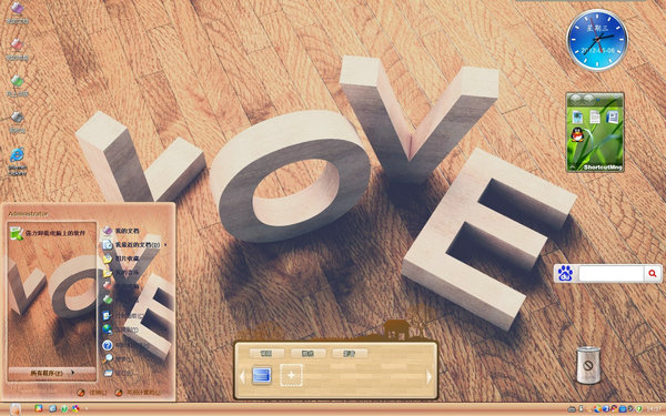 愛(ài)桌秀電腦桌面xp主題的電腦桌面非常有立體感哦,是love的幾個(gè)字母以不同的姿勢(shì)躺在木質(zhì)的地板上,真是愜意十足呢