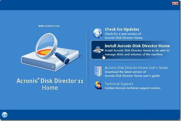 因?yàn)楸旧砭褪枪俜酵瞥龅淖钚掳?,所?Check for Updates 就不用點(diǎn)了,直接點(diǎn)第二個“Install Acronis Disk Director Home”進(jìn)行安裝即可。第三項(xiàng)那個 Acronis Disk Director Home Users Guide 點(diǎn)擊后會下載一個PDF文件,就是官方的英文版使用指南。
