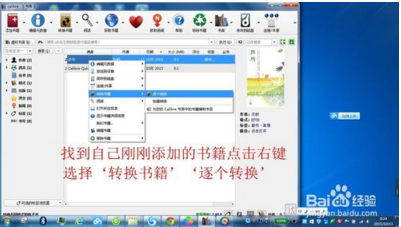7、添加完成后,在列表中找到自己剛剛添加的圖書,點擊右鍵,選擇‘轉換書籍’‘逐個轉換