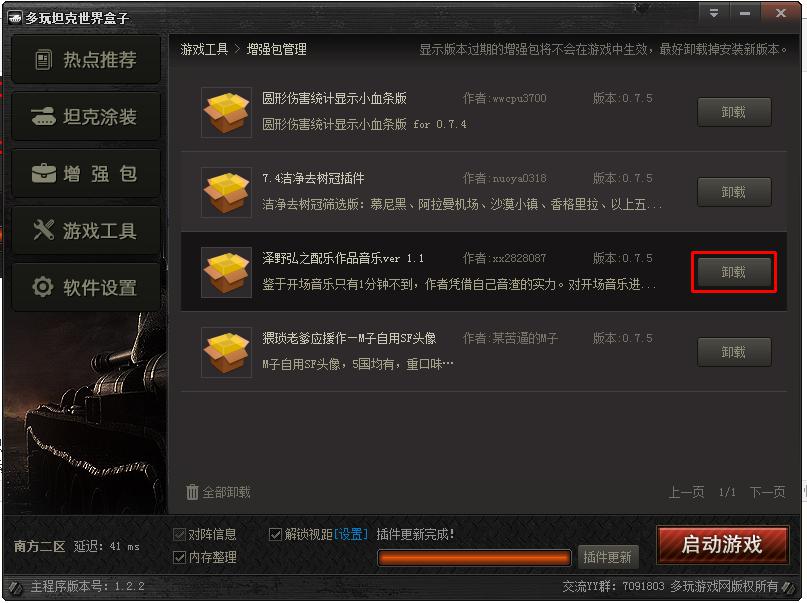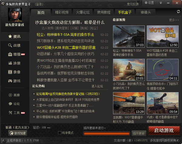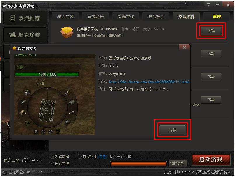 多玩坦克世界盒子主要是讓廣大不會(huì)手動(dòng)安裝插件,涂裝的玩家方便游戲開發(fā)的,對(duì)坦克世界盒子的使用有各種bug或者有好的想法、建議,可加入YY群反饋給我們,這里有坦克盒子的一手信息,讓我們一起打造大家喜愛的好產(chǎn)品。
