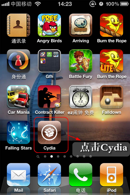 1、Cydia已經包括在軟件里面,越獄的時候不需要上網