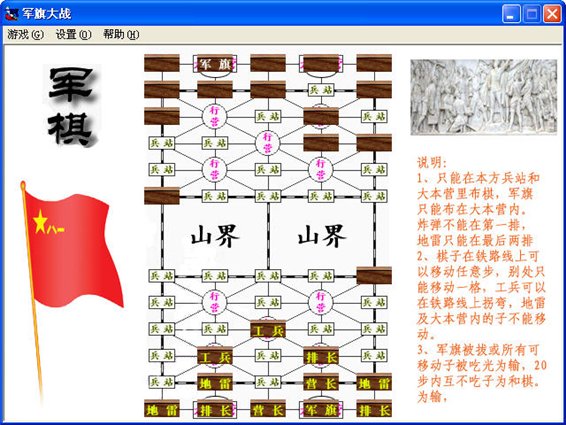 界面還不錯(cuò)的軍棋游戲,只能跟電腦打。。感覺電腦比較強(qiáng)啊~~