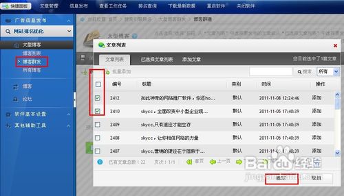 切換到“文章列表”,勾選要發(fā)布的文章,點擊確定。