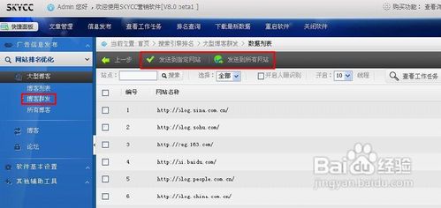 勾選您想要發(fā)送到的網(wǎng)址,然后點擊“發(fā)送到指定網(wǎng)站”(是指您勾選的網(wǎng)站),或者直接點擊“發(fā)送到所有網(wǎng)站”(發(fā)送至列表內(nèi)所有網(wǎng)站)