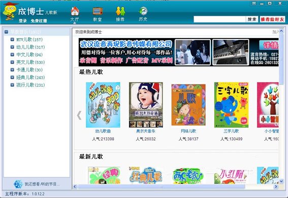 成博士兒歌大全收集了上千首經(jīng)典兒歌大全,英文兒歌,兒歌MTV,都是孩子們最新喜歡的歌曲。歡迎各種媽媽、爸爸們幫你的孩子下載吧 。
