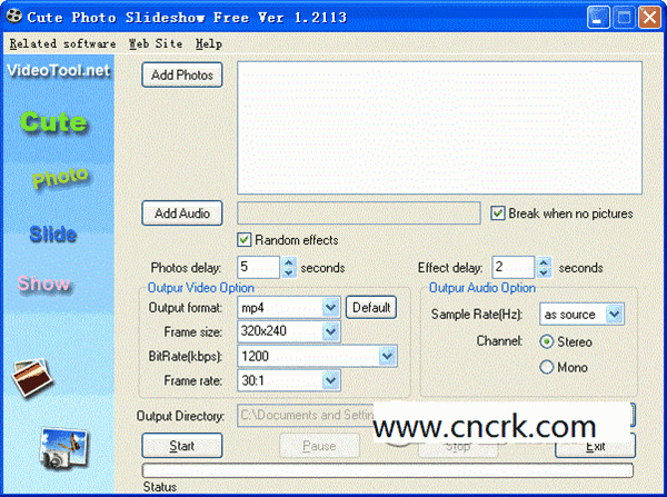 您的位置:起點軟件下載電腦軟件系統(tǒng)軟件照片制作成視頻軟件(Cute Photo Slideshow Free) v1.2115 英文綠色版
