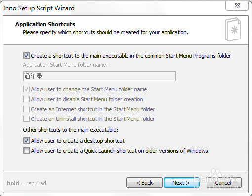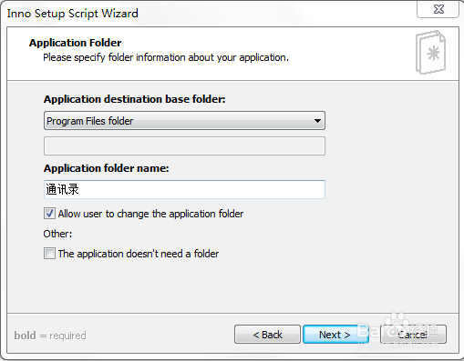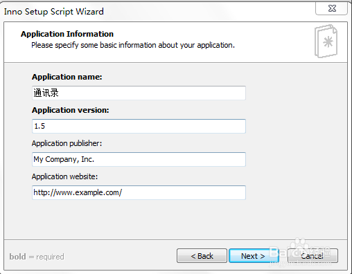 next,出現(xiàn)如下界面,第一項為應(yīng)用程序名稱,可以自己去,比如說我要生成一個通訊錄程序,就把名稱設(shè)為通訊錄,下面是版本號什么的,也是隨便寫,默認的也行